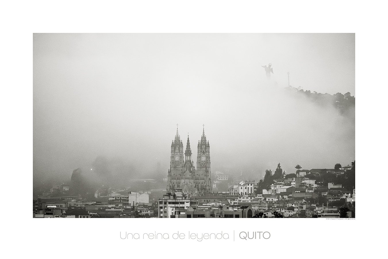 Entre nubes y silencio, la Virgen María cubre la Basílica con sus alas etéreas, como en un gesto eterno. Quito, capturada en un instante que nunca volverá.